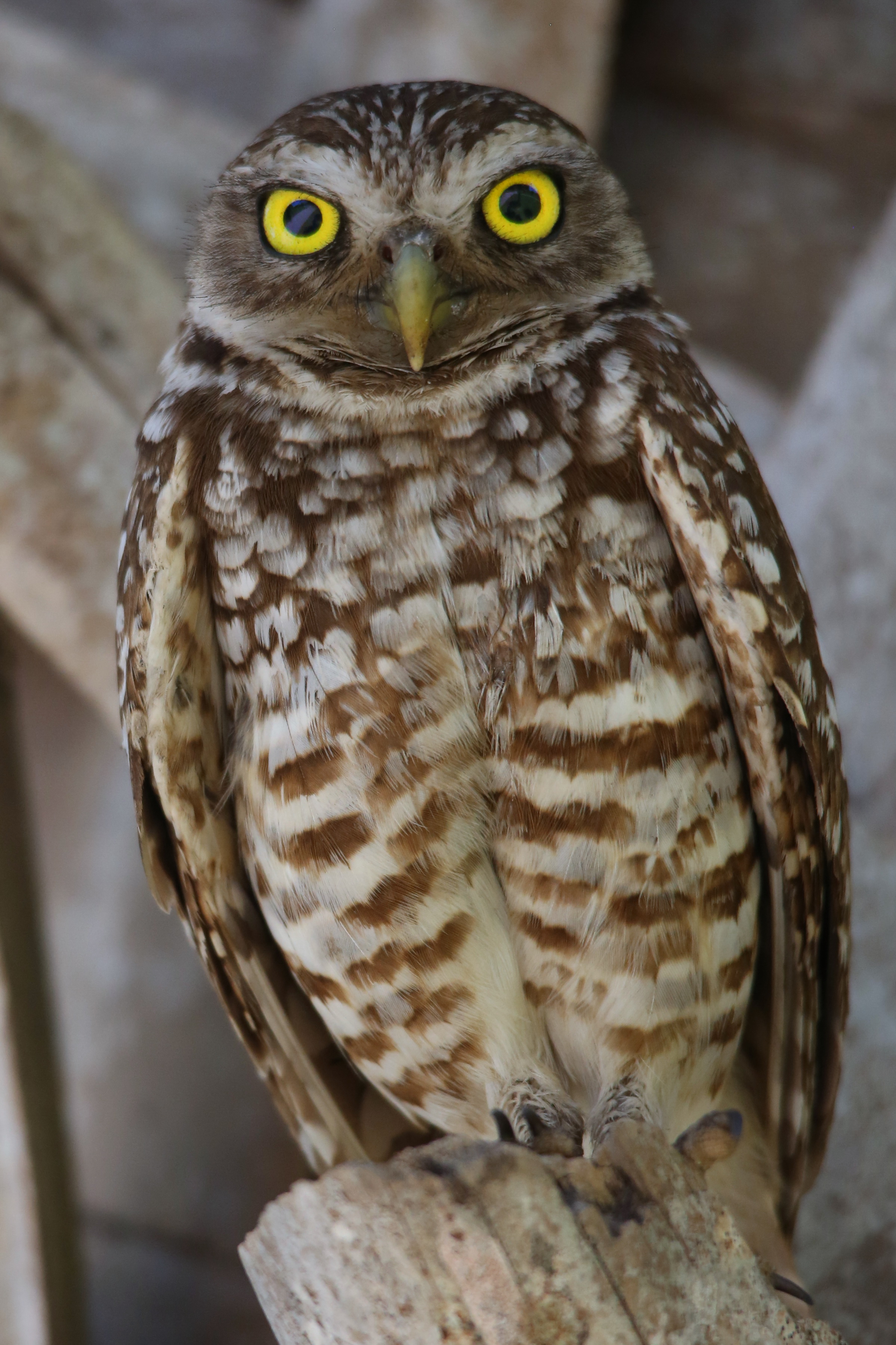 These Owls are native to this part of South Florida. The mascot of FAU, Florida Atlantic University, in Boca Raton, is the Burrowing Owl because, at one time, there were so many Owl holes in the landscape that local herders lost cattle because they would fall into a nest, injuring themselves.