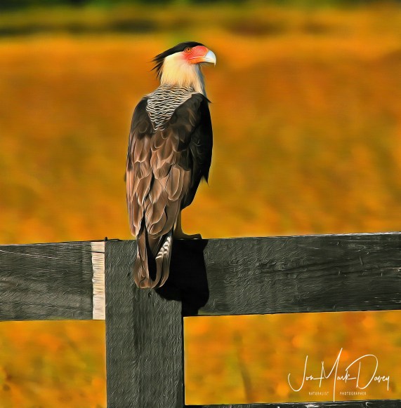 Once upon a time, many years ago, you could see these beautiful, large, Falcons by the dozens cleaning dead carcasses from the fields and roads. The Florida Wildlife and Audubon associations now tell us to expect to see fewer than 200 where there were so many of them and almost none along the coast until you are deep in South Texas. Most wildlife photographers, birds especially, delight in tracking these unique birds through the pastures and grasslands, closer description is savannas, from Indiantown Florida, north and west near the Lake Kissimmee basin along Canoe Creek Road.