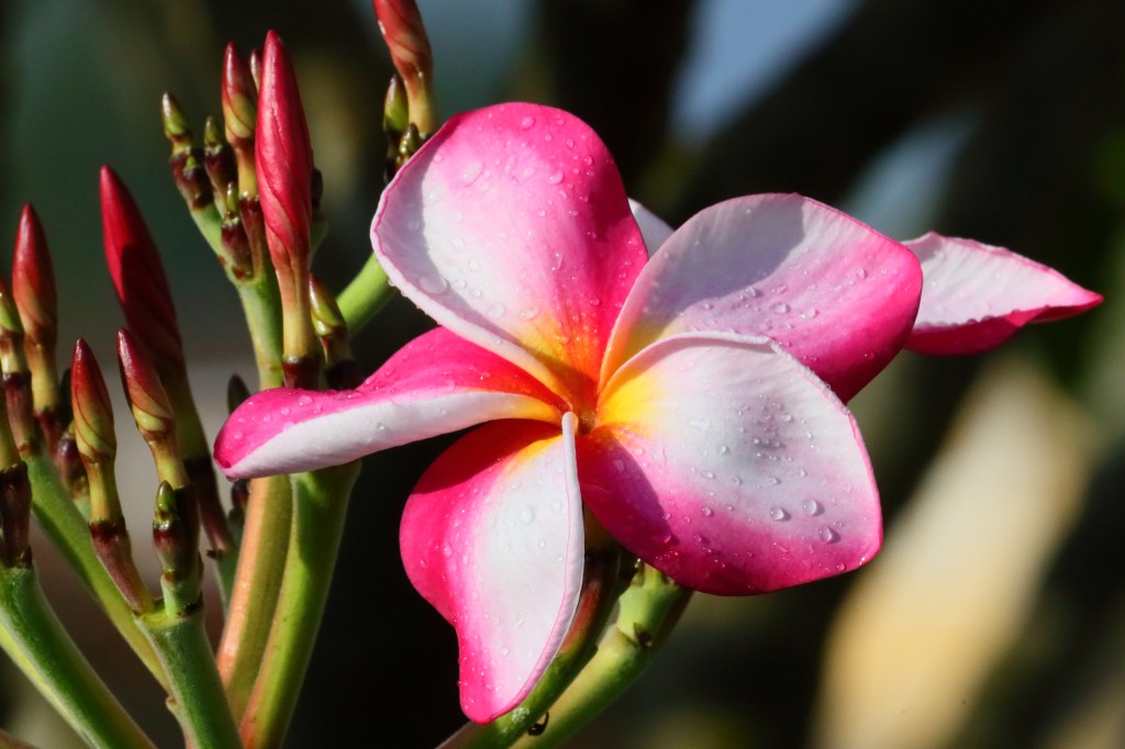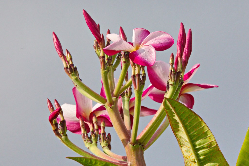 We began growing Hawaiian plumeria a few years ago when my sister-in-law, a born Hawaiian, gave us several cuttings from her trees. Now we have several trees in the back standing 12 feet tall and still growing. They explode with color as dozens of plants bloom. The fragrance in the yard is sometime overwhelming.