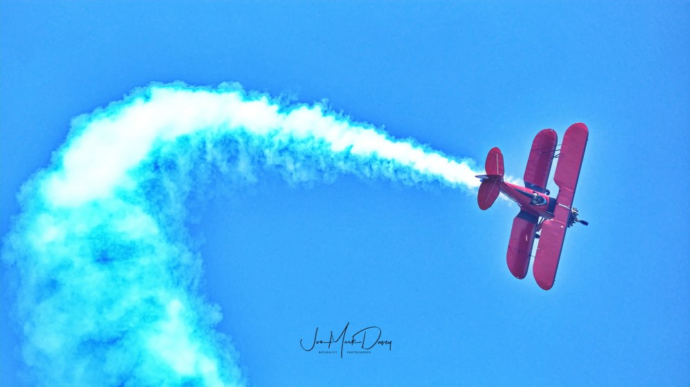 It was a thrill to watch the pilot, John Black, enjoy his performance as he swirled through the air leaving a white smoke streak to show his progress. This pilot has performed before excited audiences several thousand times over the decades.