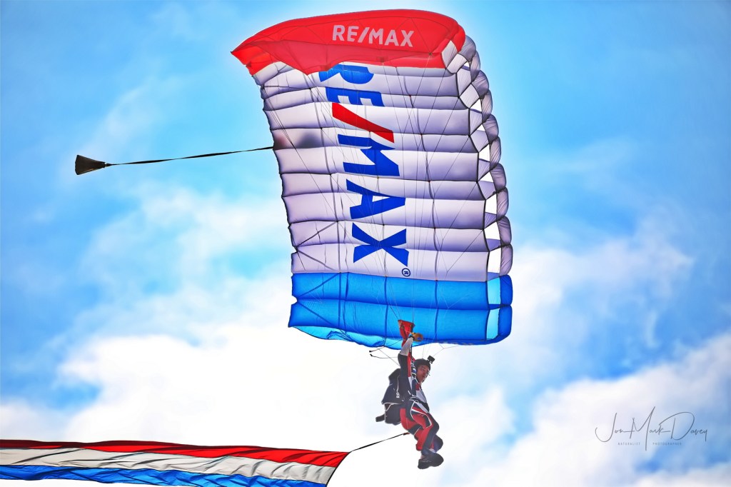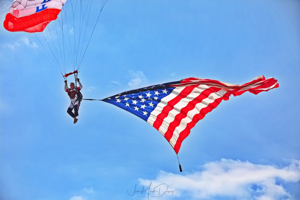 Our seats were in the “Drop Zone” area so the divers landed just a few feet in front of us. Watching that flag streaming down was quite inspiring and patriotic.