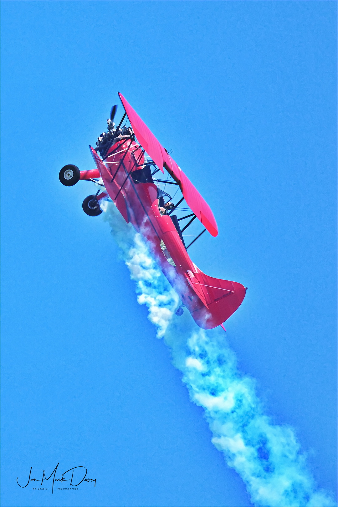 It was a thrill to watch the pilot, John Black, enjoy his performance as he swirled through the air leaving a white smoke streak to show his progress. This pilot has performed before excited audiences several thousand times over the decades.