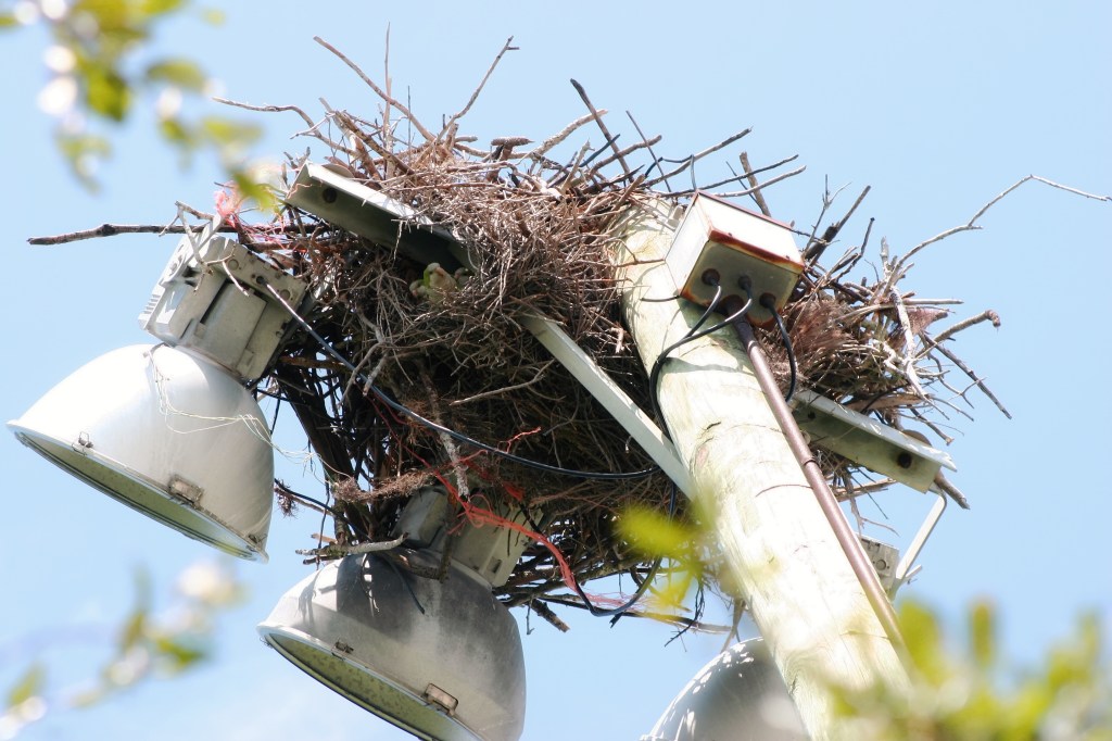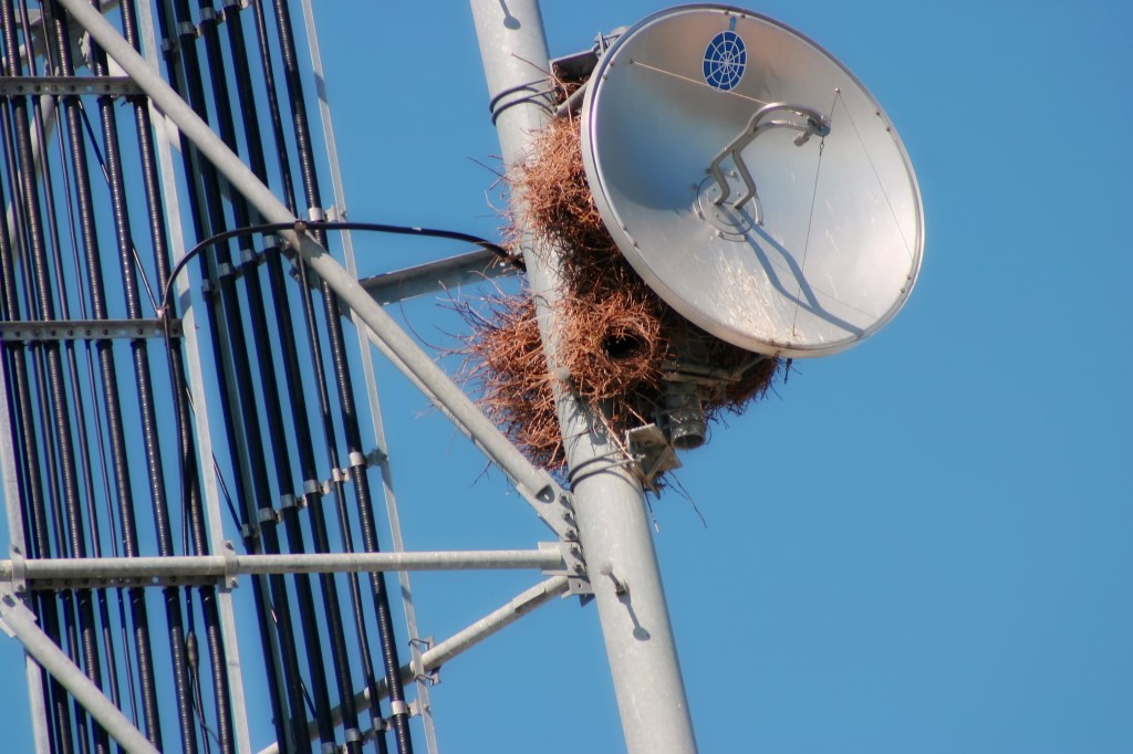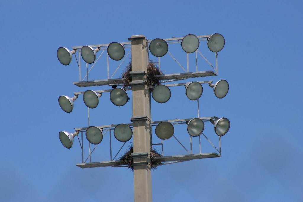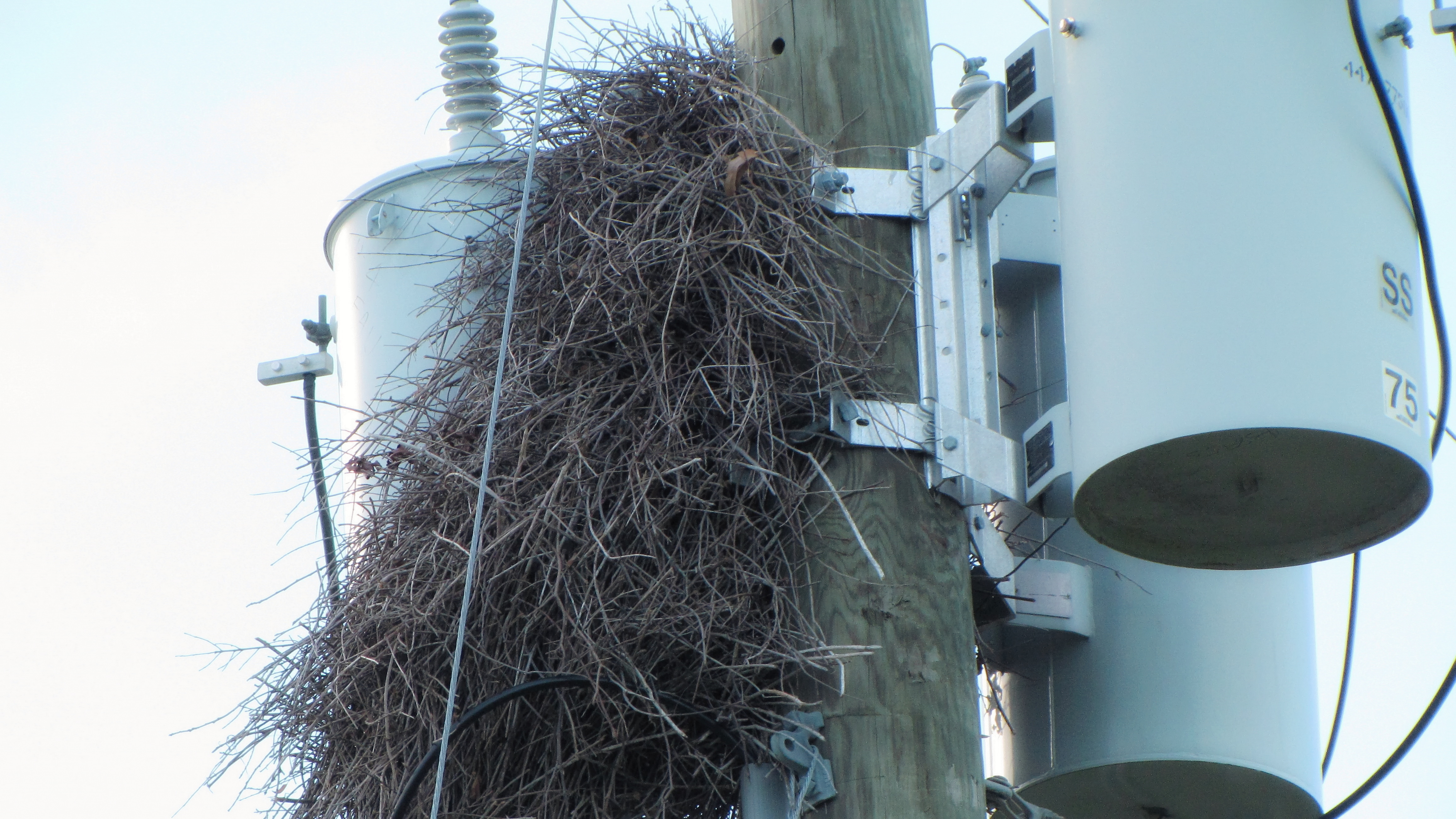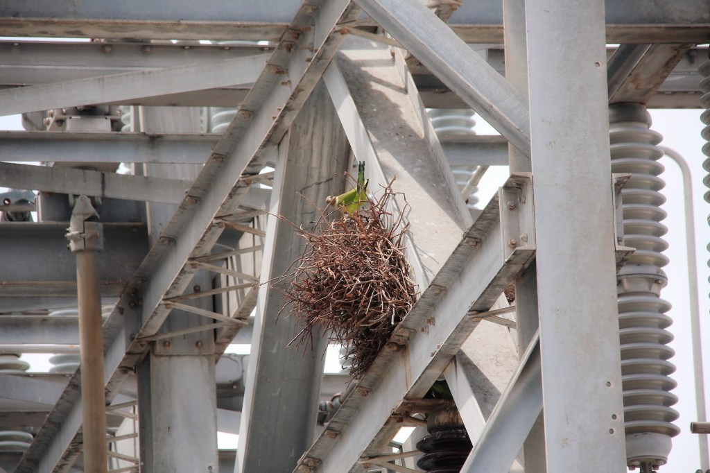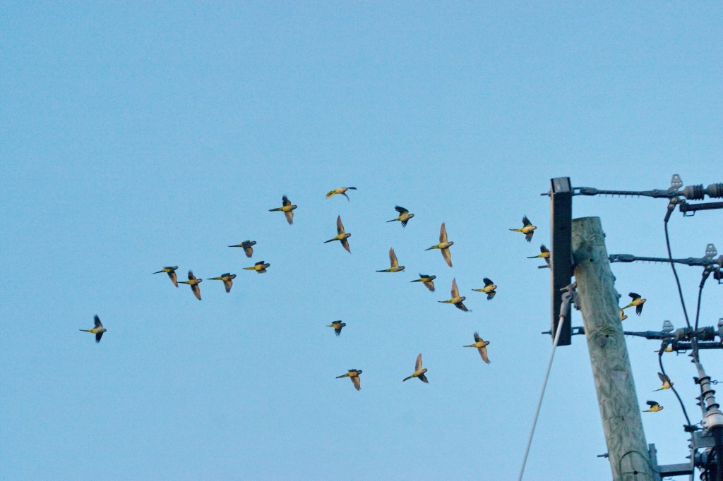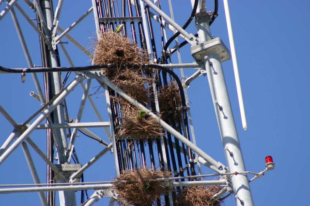 A high flying wild Quaker Parrot about to land near his nest in a power structureSoutheast Seaward Street