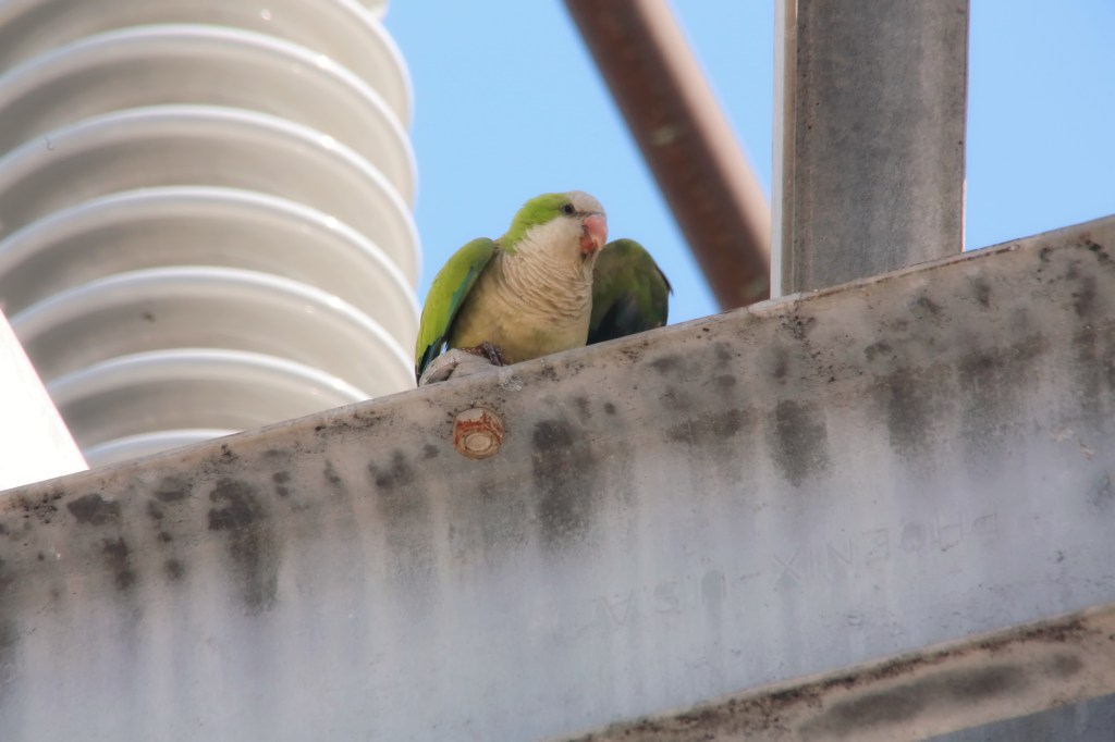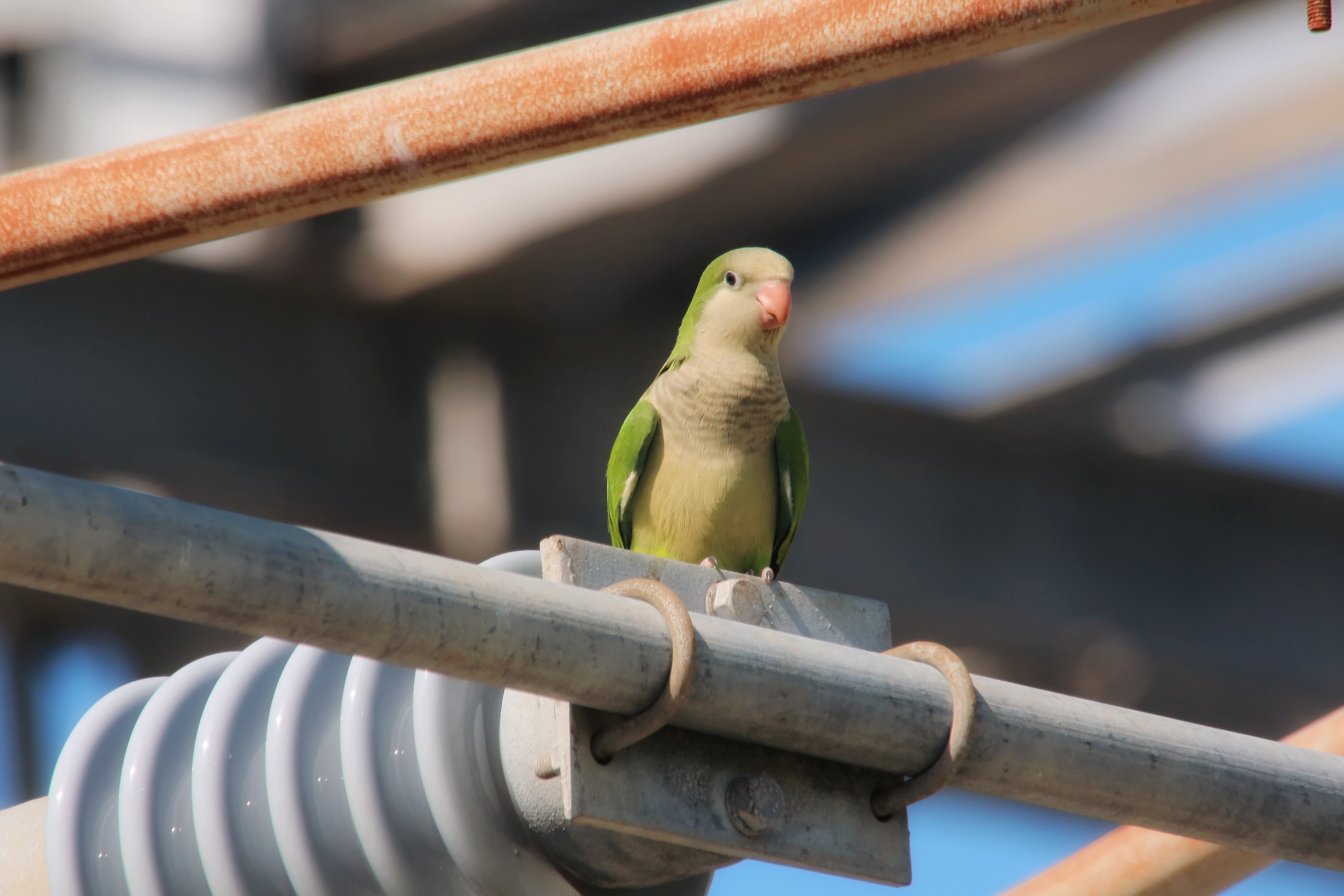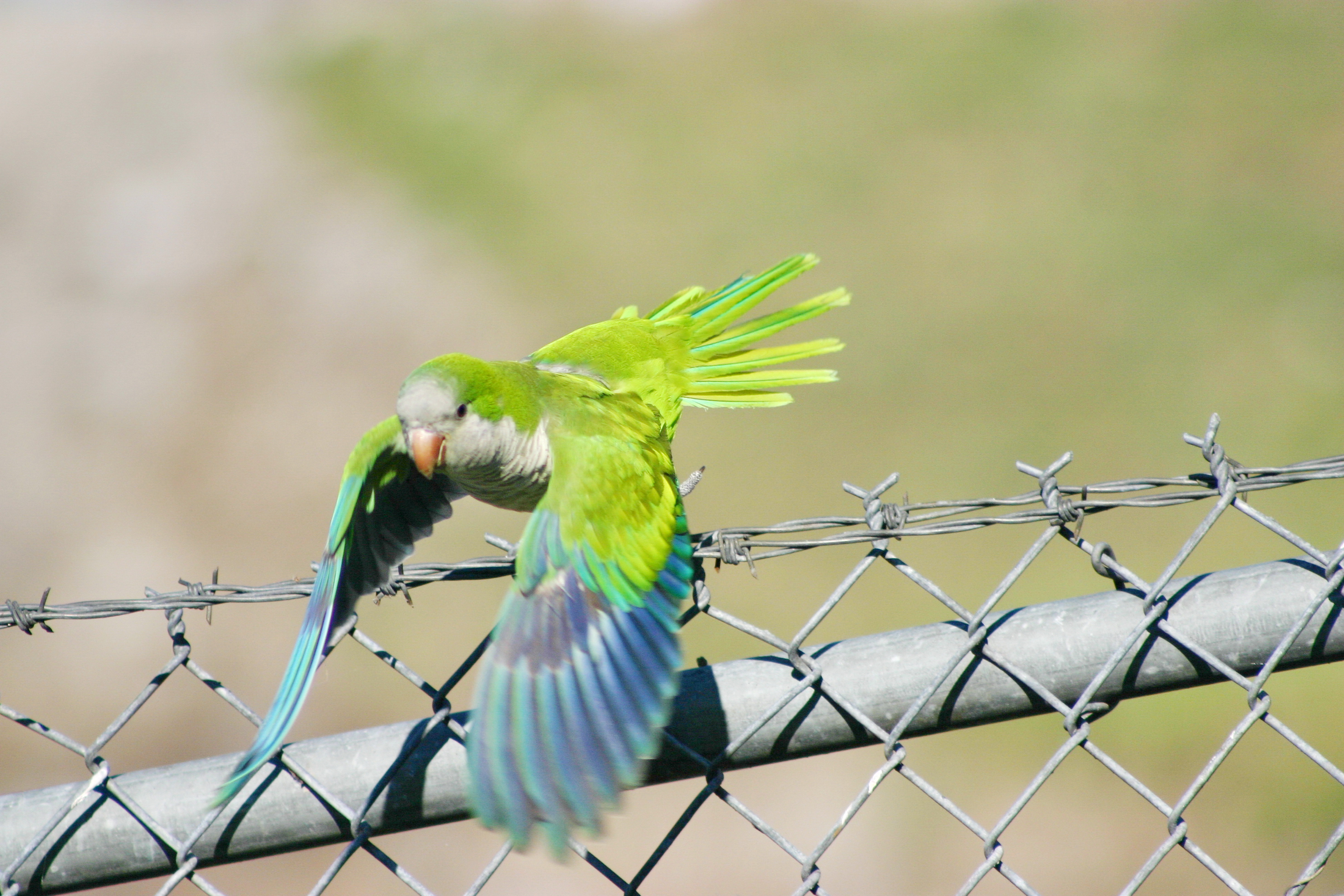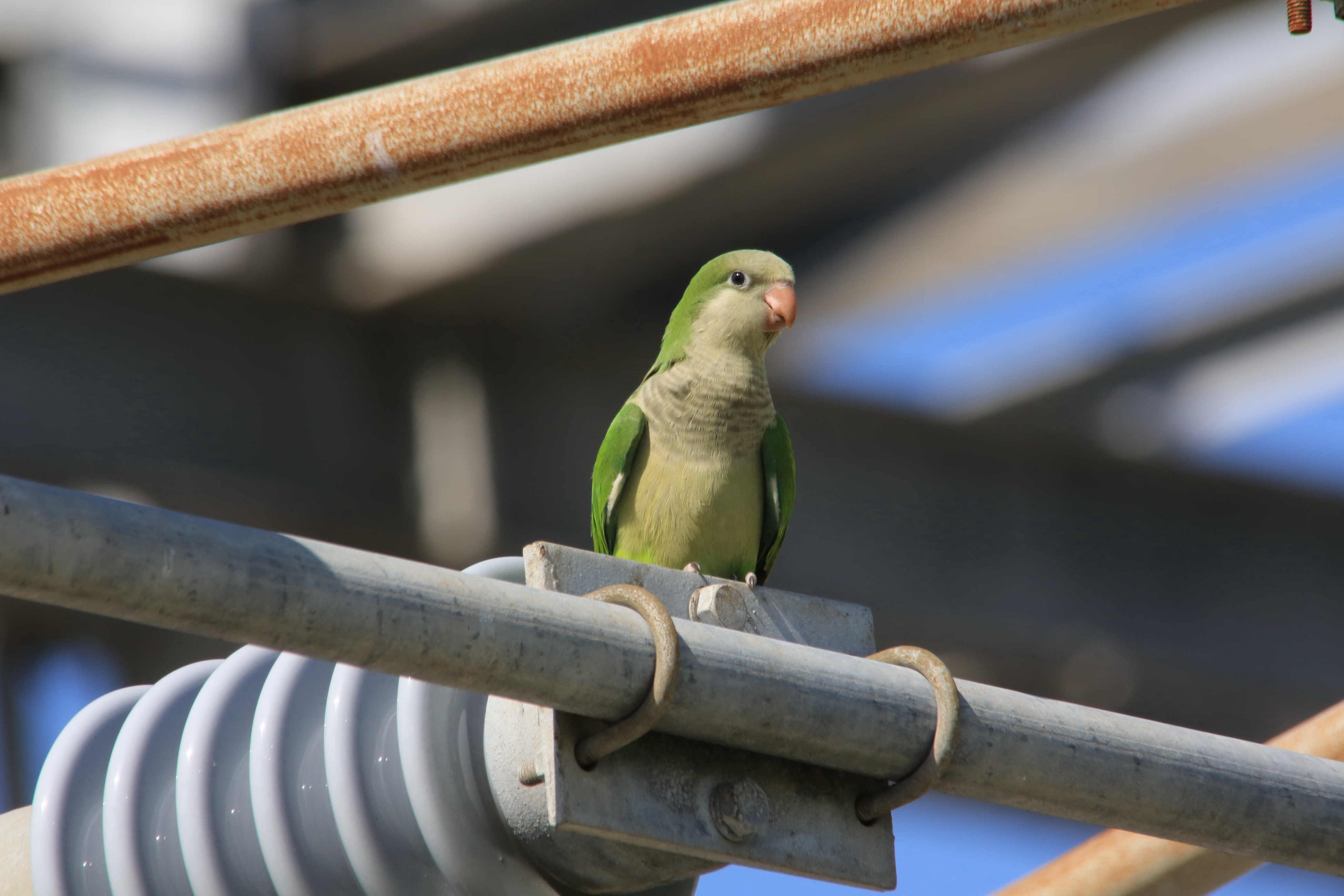 Lens Info:A wild Quaker Parrot fixing to work on the house.Southeast Desoto Avenue